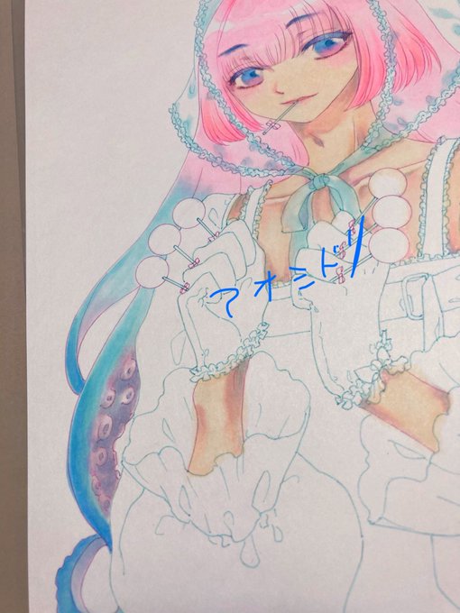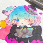 ドローイングが無事に届いたようなのでアップします*\(^o^)/* はじめ台紙に描くのかな?と思ってたんですが塗ってるうちに違うんじゃないかと気付きはじめるという‥ #コピック #オリジナル