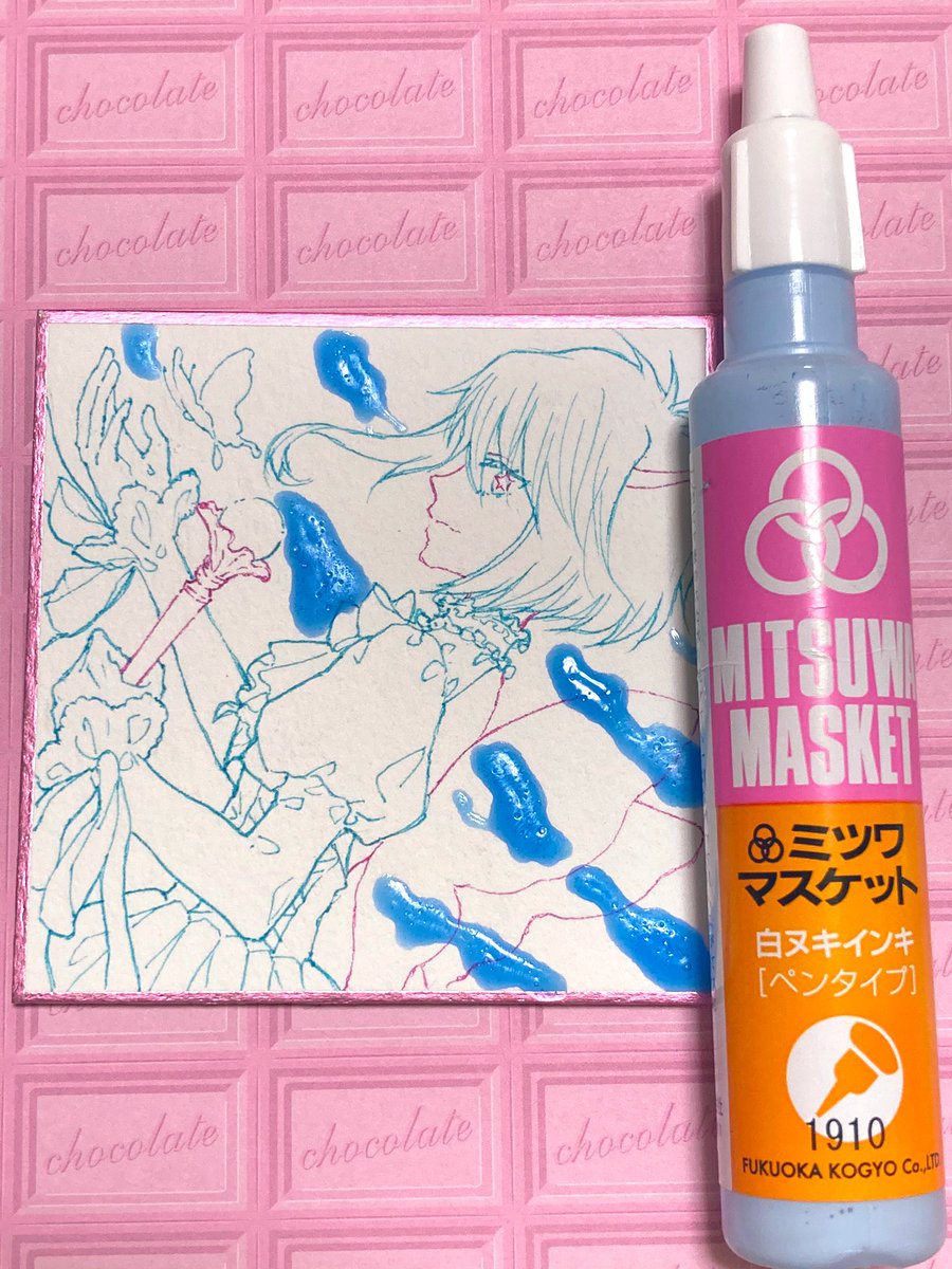 インクを垂らし過ぎたので乾かしてる間にミニキャラをペン入れします #2022カレンダーknm3 #コピック