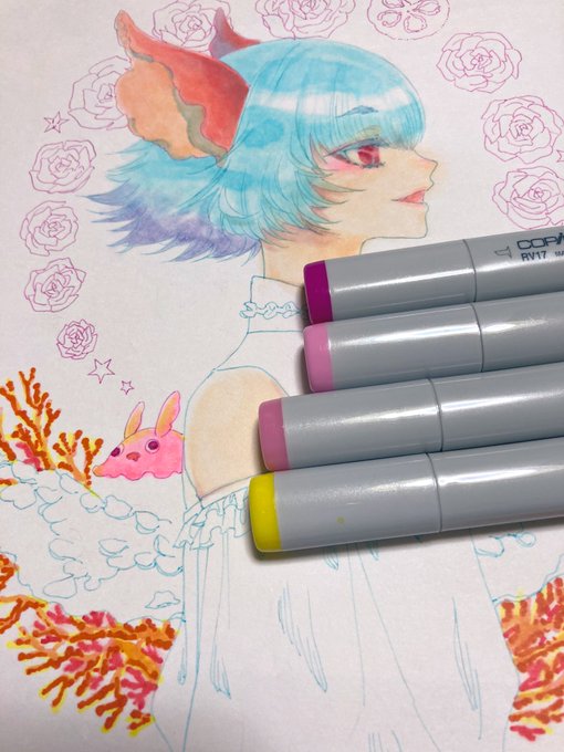 今日はここまで😌 薔薇のフリしてるタコノマクラ #コピック