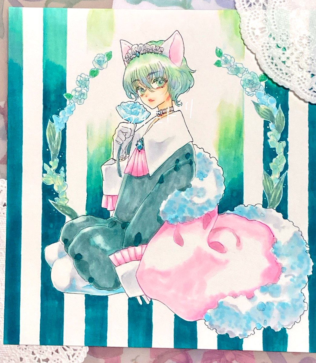 これで完成かな? キラキラ部分はピクシーパウダーを使いました🐠 #コピック