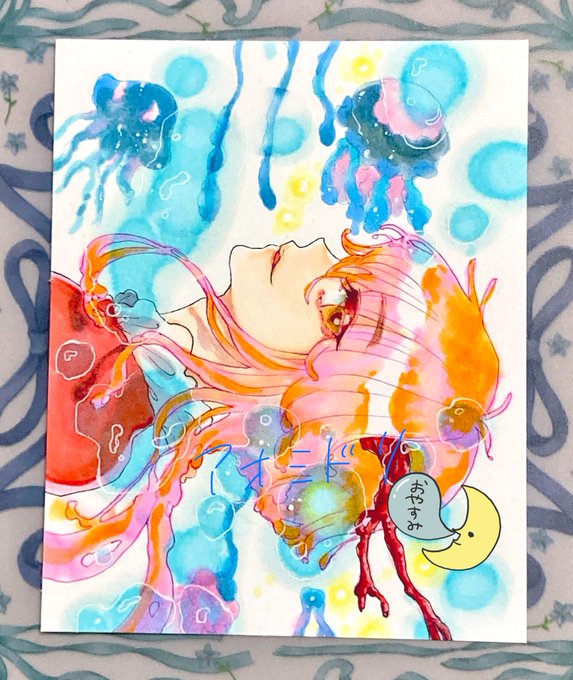 7 20 梅田toolsさんに出す豆色紙これで完成です(たぶん‥)😌 作品展示は9/22〜10/10です☺️ #豆イラコン #コピック 22/08/23 23:25