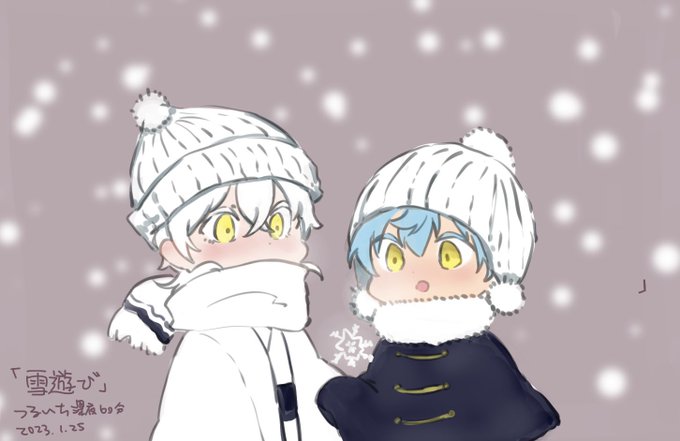 11 34 お題「雪遊び」 写しの初めての雪遊び! 寒くなってから、暖かくしてね皆様 #つるいち深夜のワンドロワンライ60分1本勝負 23/01/25 20:34