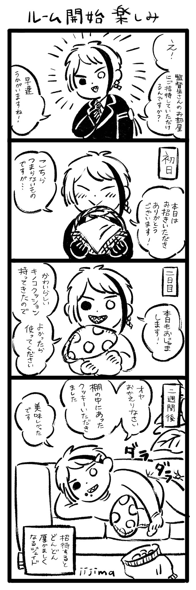 ルーム楽しみすぎて描いた漫画 親密度と共に厚かましくなるジェ #twstファンアート #ツイステファンアート