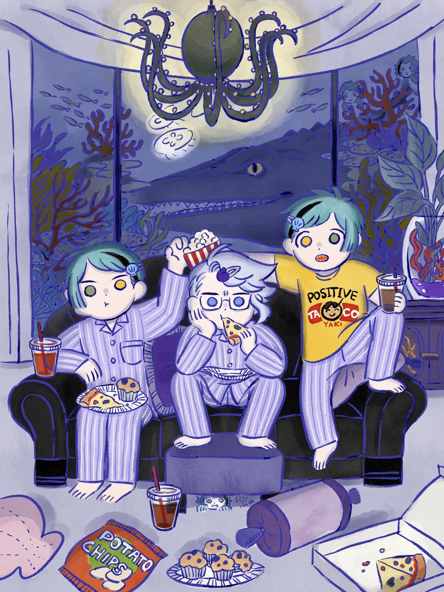 607 4999 チートディは映画を観ながら🎞 #ツイステファンアート #twstファンアート 以前マロでリクエストいただいた『ご飯を食べるオクタ』です❣️ 22/06/15 18:01