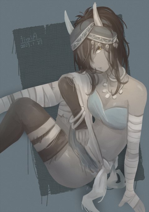 22 86 #人外版深夜の真剣お絵描き60分一本勝負 お題は 「アナタが考える火山に棲んでそうな人外」 「“砂”から連想する人外」 「鬼娘」 アスラ 23/05/20 00:24