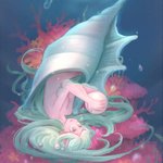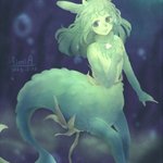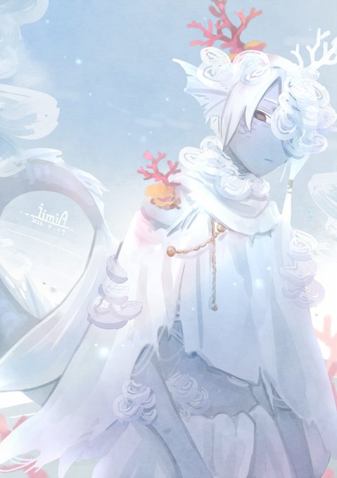 16 62 #人外版深夜の真剣お絵描き60分一本勝負 お題は 「アナタが考える藻類をモチーフにした人外」 「“魚鱗”から連想する人外」 珊瑚とウミウチワに寄生された砂漠人魚🪸 23/03/25 00:26