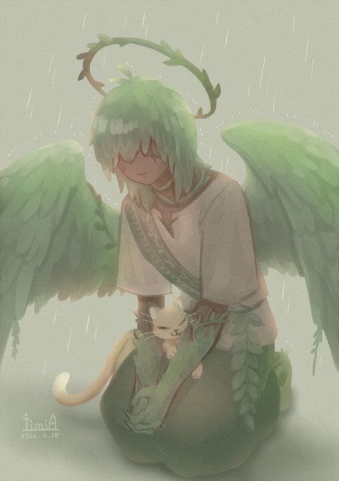 14 43 #人外版深夜の真剣お絵描き60分一本勝負 お題は 「アナタが考える羽が生えたスカーフェイスの人外」 「“遣らずの雨”から連想する人外」 「エント」 🌿 23/02/19 00:25