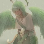 #人外版深夜の真剣お絵描き60分一本勝負 お題は 「アナタが考える羽が生えたスカーフェイスの人外」 「“遣らずの雨”から連想する人外」 「エント」 🌿