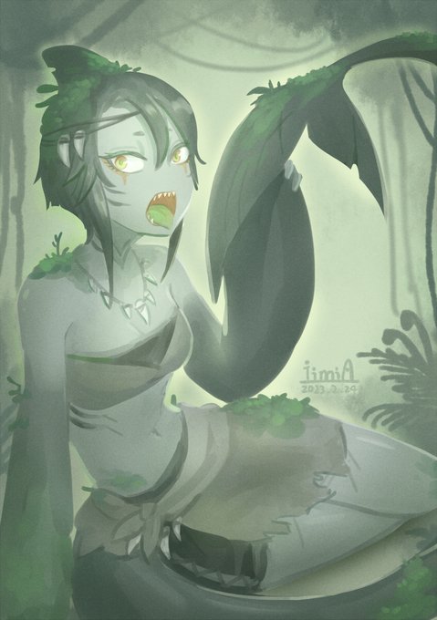 24 77 #人外版深夜の真剣お絵描き60分一本勝負 お題は 「“沼地”から連想する人外」 「サメ人外」 🦈 23/02/25 00:23