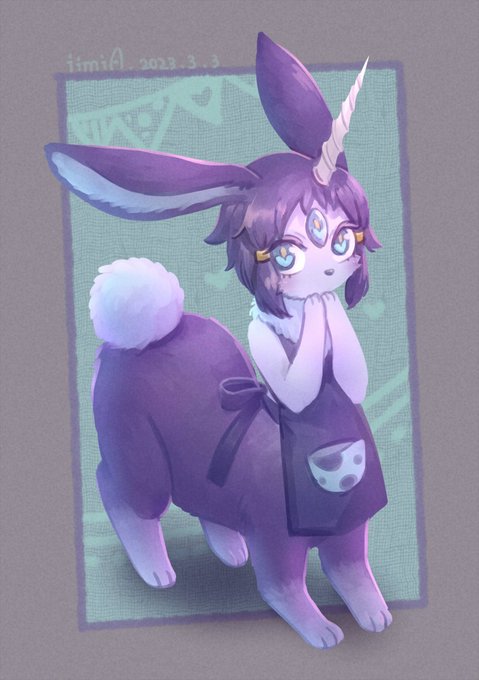 16 64 #人外版深夜の真剣お絵描き60分一本勝負 お題は 「アナタが考える三つ目の四つ脚人外」 「アルミラージ」 🐰💜 23/03/04 00:06