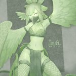 14 58 #人外版深夜の真剣お絵描き60分一本勝負 お題は 「アナタが考えるを果物をモチーフにした人外」 「“柳鼠”から連想する人外」 「ハルピュイア」 🍈🥷 23/03/18 00:12