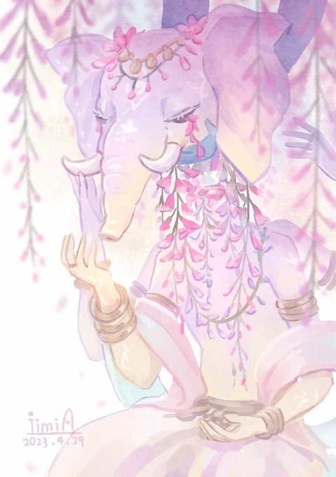 1 5 #人外版深夜の真剣お絵描き60分一本勝負 お題は 「“フジ”から連想する人外」 「ガネーシャ」 🐘 23/04/30 00:23