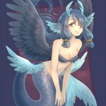 #人外版深夜の真剣お絵描き60分一本勝負 お題は 「アナタが考えるオッドアイの半透明の人外」 「ハルピュイア」 30分から始まるので、遅刻すみませんでした