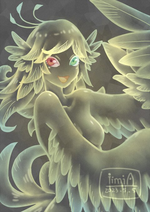 9 17 #人外版深夜の真剣お絵描き60分一本勝負 お題は 「アナタが考えるオッドアイの半透明の人外」 「ハルピュイア」 30分から始まるので、遅刻すみませんでした 23/05/06 00:32