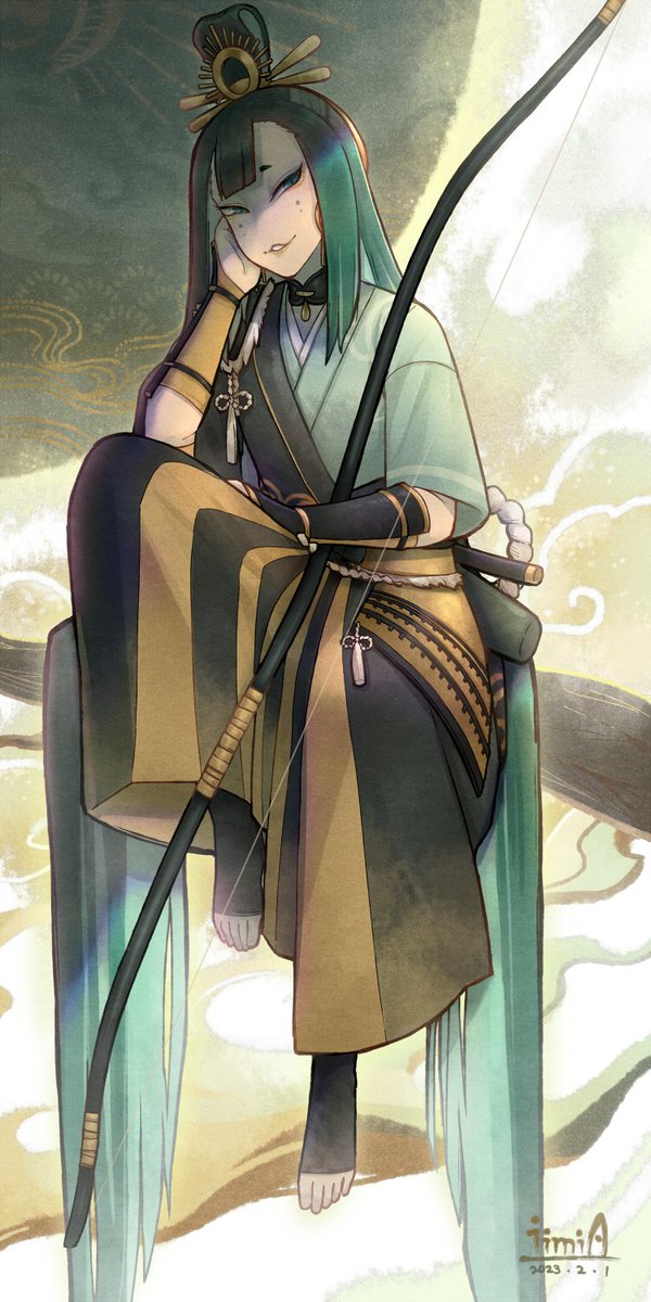 6 11 #人外版深夜の真剣お絵描き60分一本勝負 お題は 「アナタが考える身体の一部が3つある黒白目人外」 「“春”から連想する人外」 「マンティス」 🌺鎌鼬 23/02/04 00:17