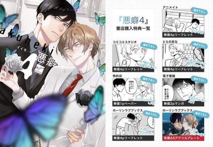 本日より以下電子配信サイトさんでも「悪癖4」配信開始です。よろしくお願いいたします🦋🦋🦋 Kindle amazon.co.jp/dp/B0BSV3QZ5K DMMブックス book.dmm.com/product/406284… ebooks ebookjapan.yahoo.co.jp/books/626986/A… #悪癖4