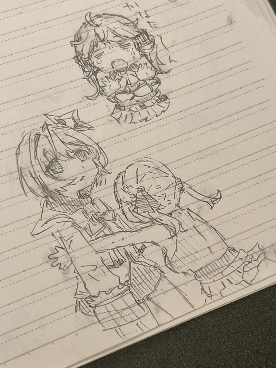 授業中に描いたかなマリ🏴☠️💫 学校パロ!🏫👩🎓 #かなマリ #かなたーと #マリンのお宝