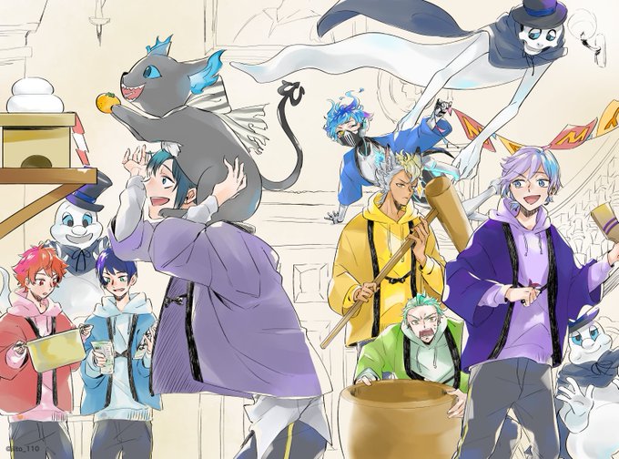 ←年末 年始→ で繋がってるという遊び 皆で蕎麦食べて餅ついて羽子板して餅食べて欲しいです🎍 #twstプラス