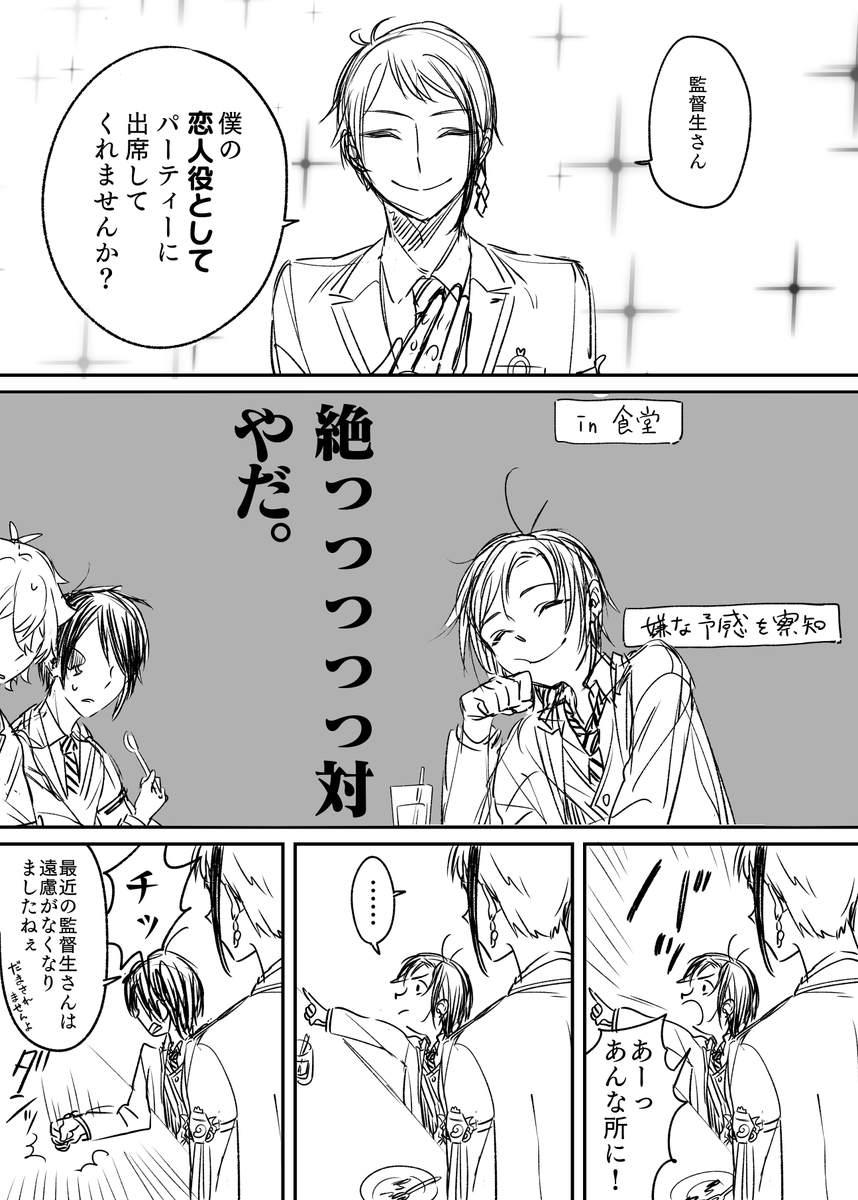 断固拒否のジェイ監 気を逸らして逃げようとするも失敗の巻 力尽きたので下書き もし続いたらちゃんと描きます #twstプラス