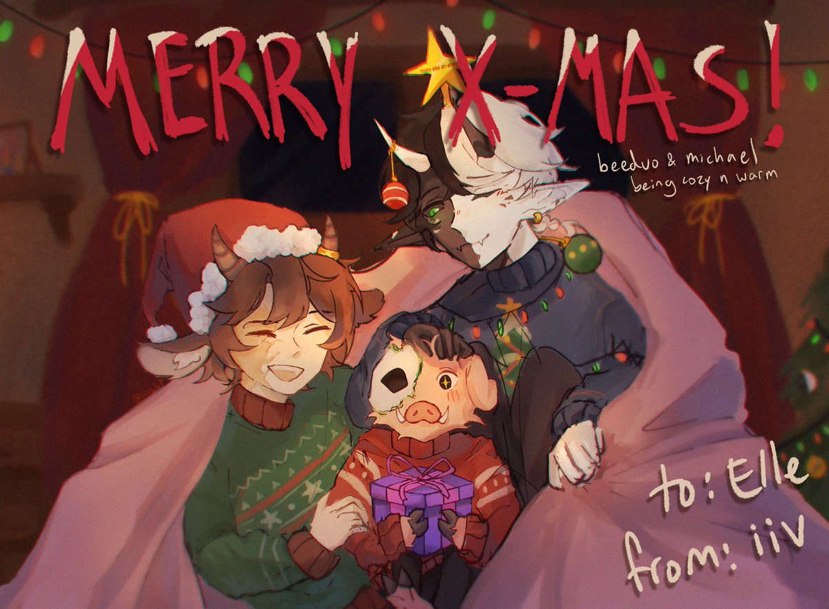 heheh gift for @periwinkle_moon !! had to speedrun this but it was really fun to draw. happy holidays! #ranboofanart #tubbofanart #beeduofanart #michaelfanart