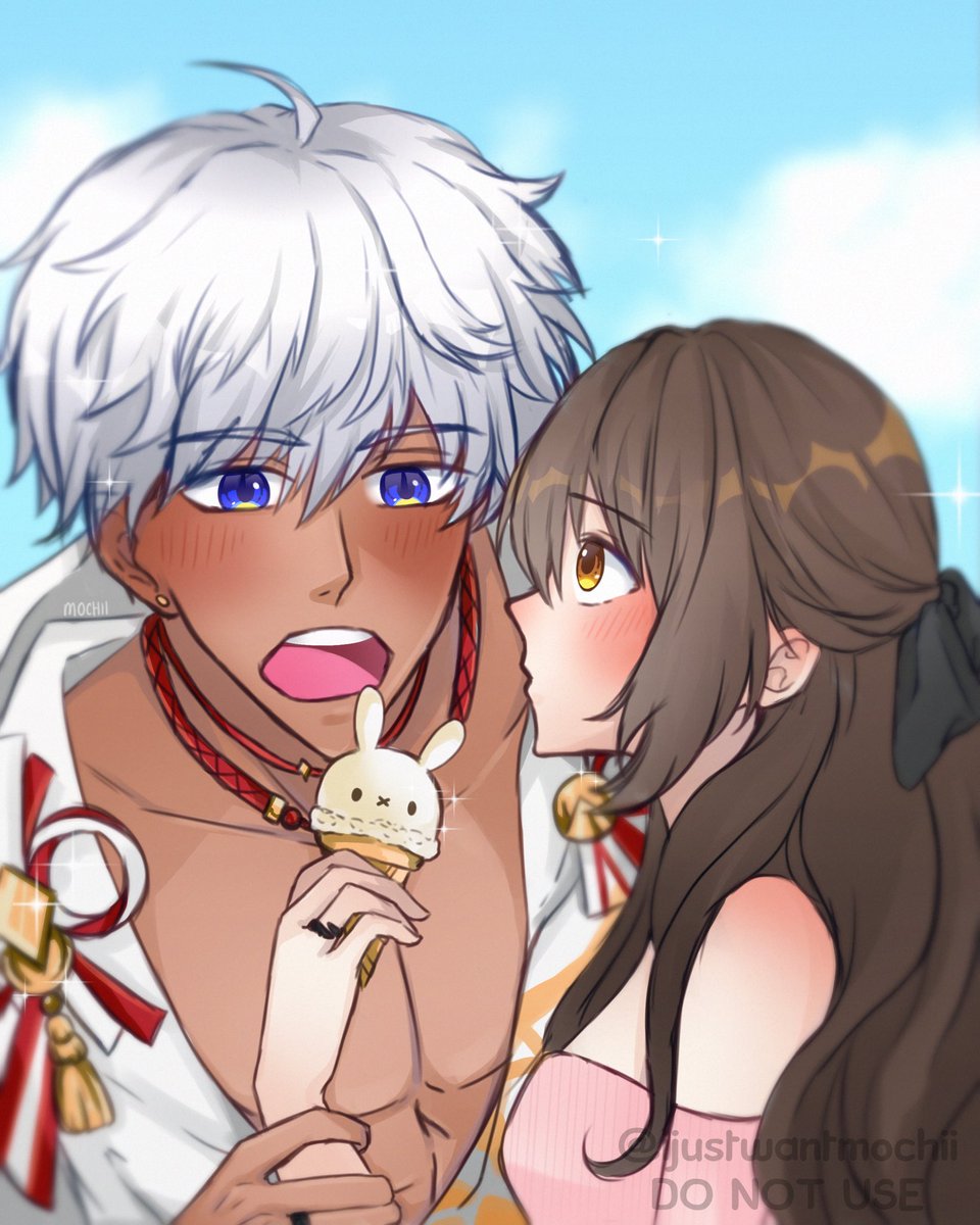 mammon couldn’t help but want a taste of her ice cream too ☆ ft. yukata mammon because i don’t draw him in it enough— #obeyme #mammon #obeymemammon #obeymefanart #マモン #obeymeマモン #おべいみー #obeymejp