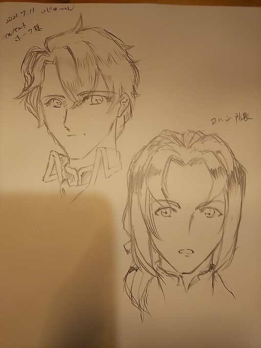 3 10 アルベルトホーク様とヨハン所長描きました。 女子ウケするように男キャラ描きました。 #珈琲都夢 21/07/11 15:50