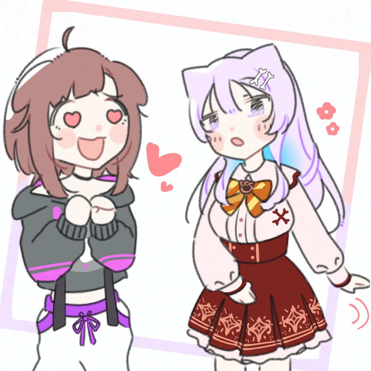 おかころ(?) #絵かゆ #できたてころね #ホロライブ #猫又おかゆ #戌神ころね #イラスト #ホロぐら