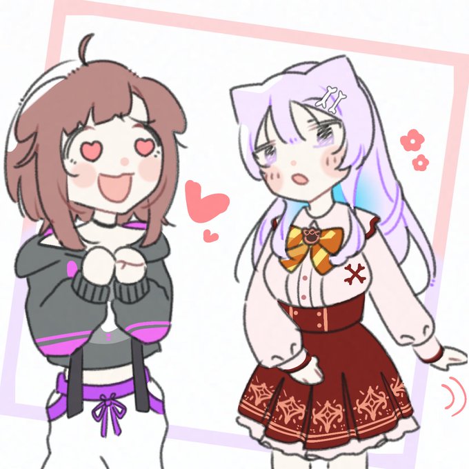 34 154 おかころ(?) #絵かゆ #できたてころね #ホロライブ #猫又おかゆ #戌神ころね #イラスト #ホロぐら 23/05/02 18:00