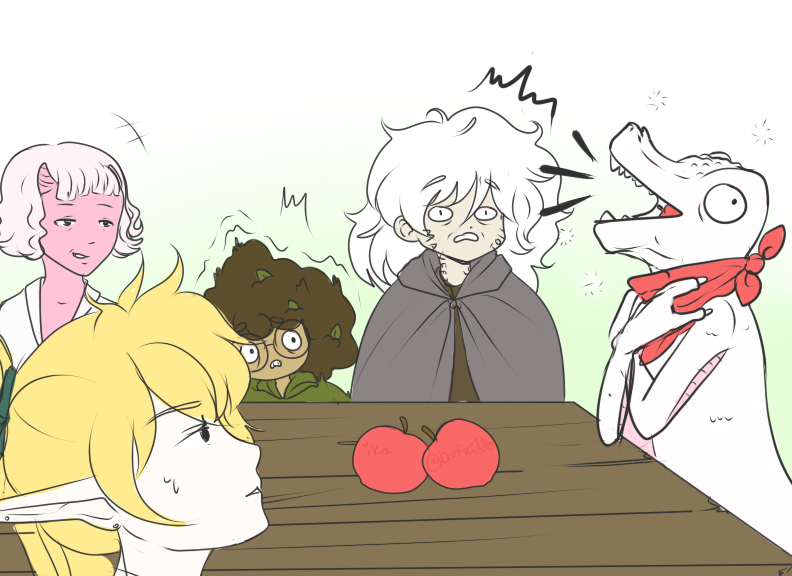 a quick #doodle of my current #dnd party based on some dumb shenanigans we got ourselves into. remember to chew your food kids. #dungeonsanddragons #dnd5e #DnDcharacter #kawaii #anime #elf #fantasy #animeartist #digitalart #art #artistsontwitter #artistontwitter #dndparty