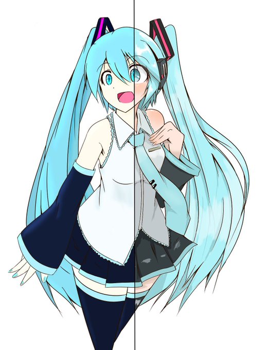 こだーい@koda_i_daze と半分色塗り企画しました!こだーいありがとう! 線画のほうはこちらの方からいただきました。ありがとうございます。 seiga.nicovideo.jp/user/illust/12… #illustration #イラスト #初音ミク