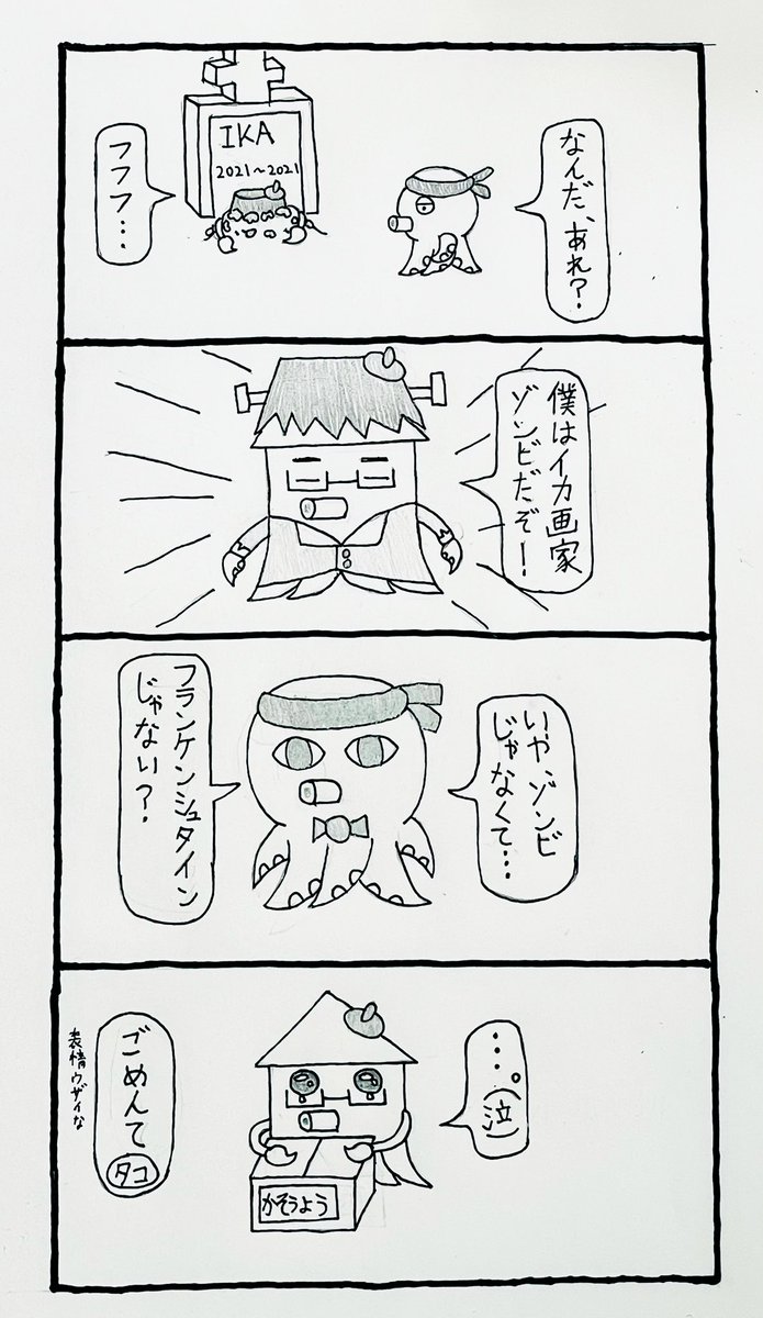 1 0 テーマはゾンビです。 なんでこのテーマにしたんだろ。 とりあえず笑ってくだせぇ。 #4コマ漫画 #漫画が読めるハッシュタグ #イカ画家 #ゾンビ 21/12/31 10:26
