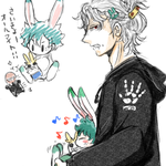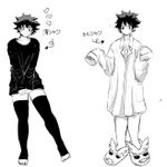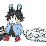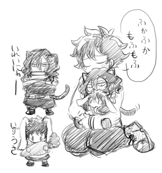 落書き。心君と出君とぬいぐるみ二匹と子猫。 そしてさりげに彼シャツ出君(相出) 心君の髪の毛のボリュームでいつも悩む…
