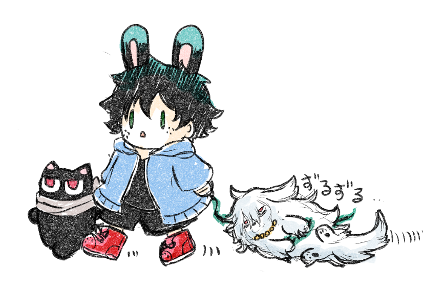 ゆるいおさんぽ落書き。帰りたくないわんこ転とうさ出君と猫澤。 帰ると洗われるので帰りたくない転。