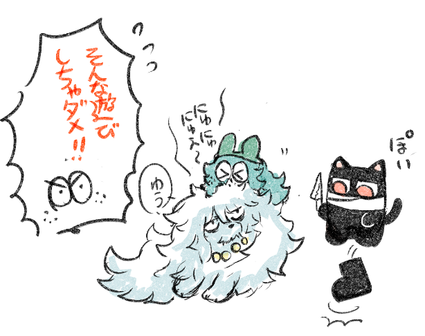 ゆるい犬猫ぬいぐるみ時空で今回の回落書き。