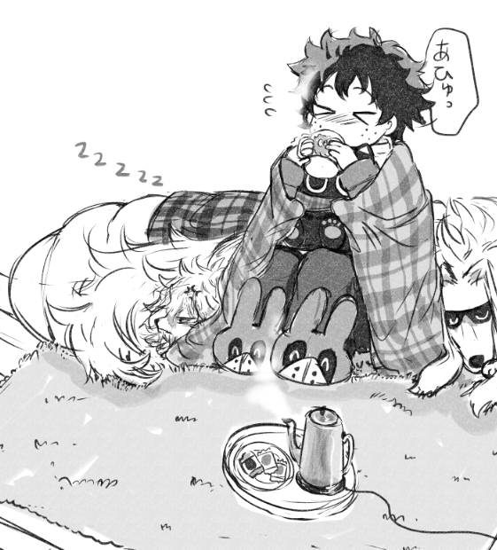 11 61 ゆるいおさんぽ落書き。帰りたくないわんこ転とうさ出君と猫澤。 帰ると洗われるので帰りたくない転。 22/11/23 01:54