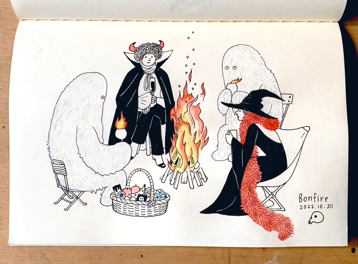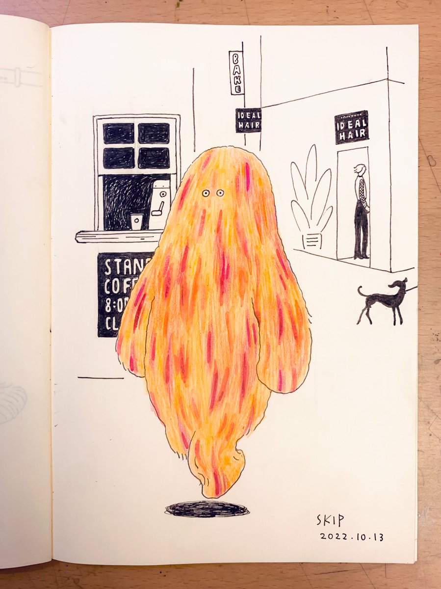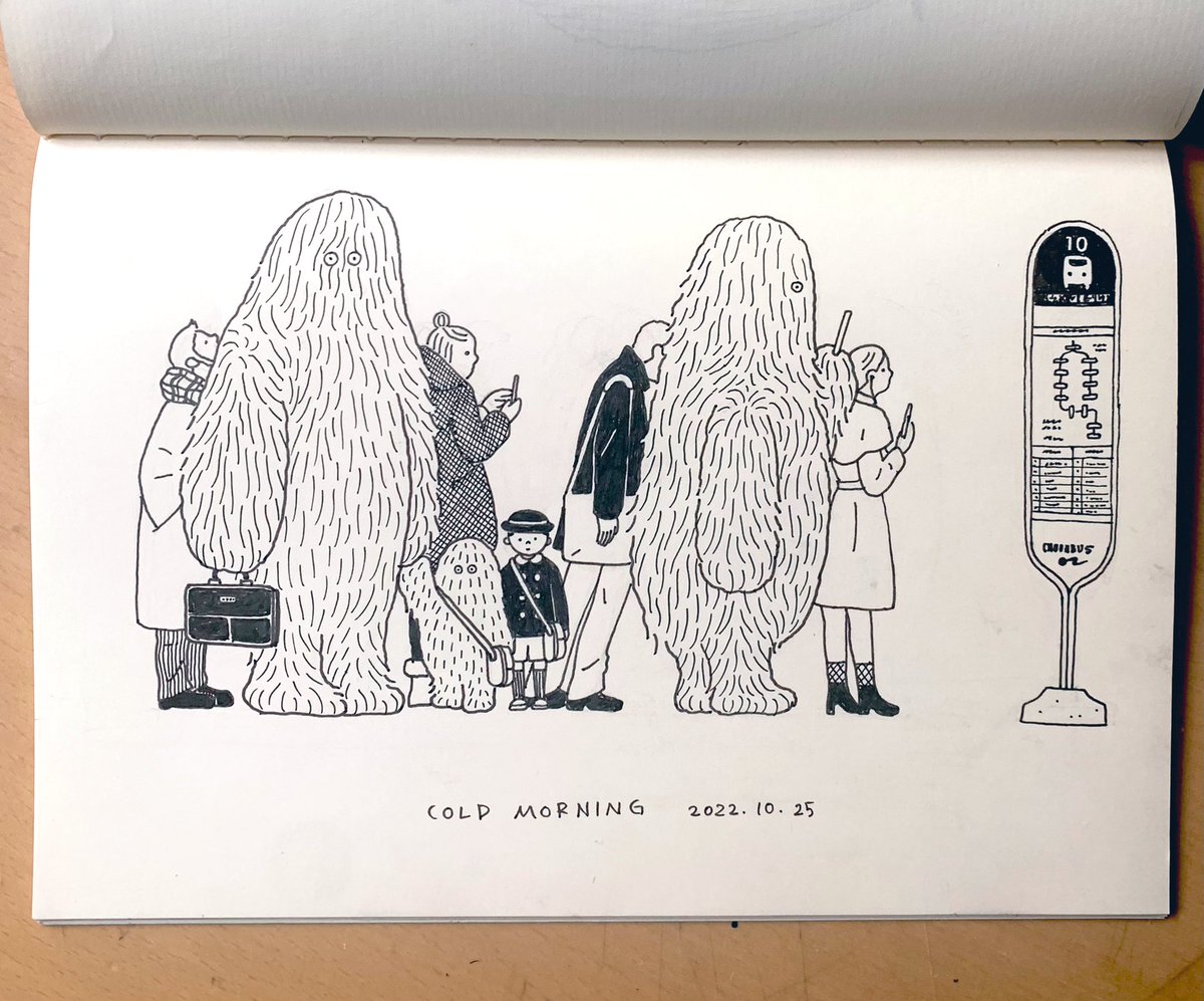 ことばの白地図を歩く:翻訳と魔法のあいだ 奈倉有里 著 創元社 amzn.to/3P58i9R 本文の挿絵など 2色ページですが、中間色を使わず線の混み具合で濃淡を表して描いてみました。 挿絵では語学学習の強敵"妖怪あきらめ"が章の進みとともにだんだん遠のいていきます