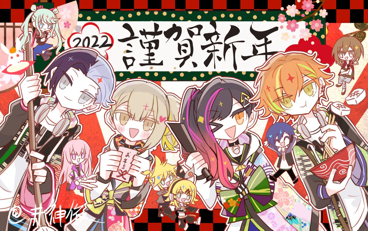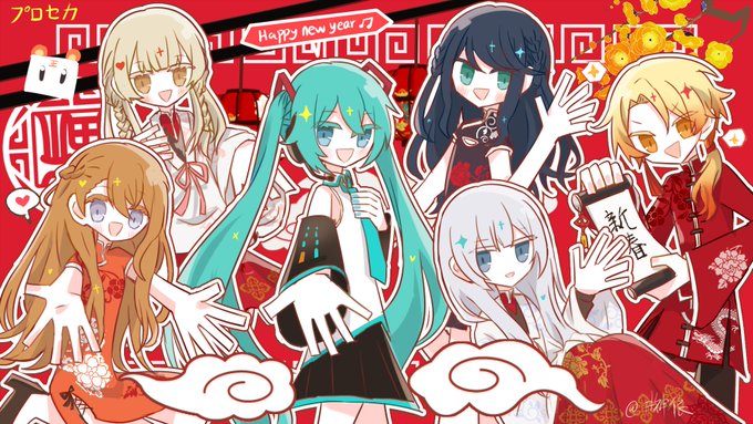 122 757 この前描いた 中国の新年雰囲気でリーダー組 #prsk_FA 22/02/15 16:04