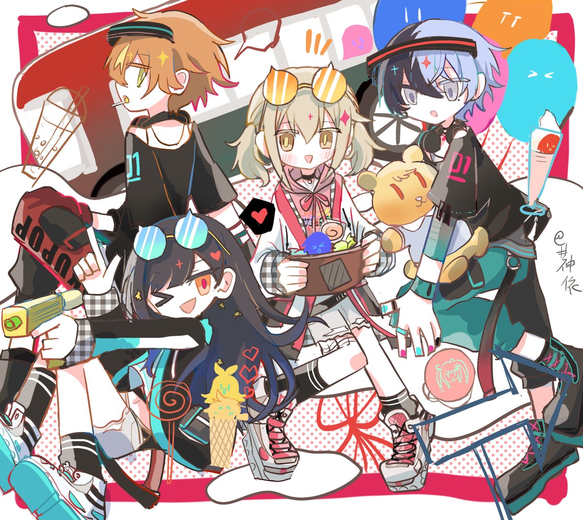 この前描いた 中国の新年雰囲気でリーダー組 #prsk_FA