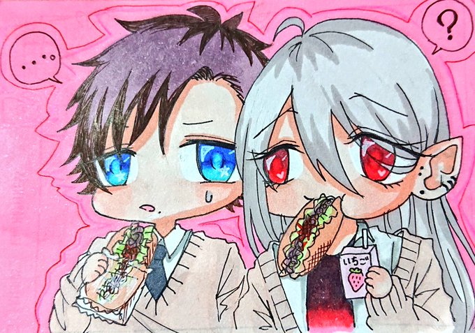 「お前さ、毎日焼そばパンで飽きないのか?」 「…えー別に飽きないよ」 「たまには違うやつとか…」 「……じゃあ良くんを食べるよ?」 「ガチの顔で冗談言うのやめてくれ、お前が言うと冗談に聞こえない」 #オリキャラ #私の絵柄が好みって人にフォローされたい #絵描きさんと繫がりたい
