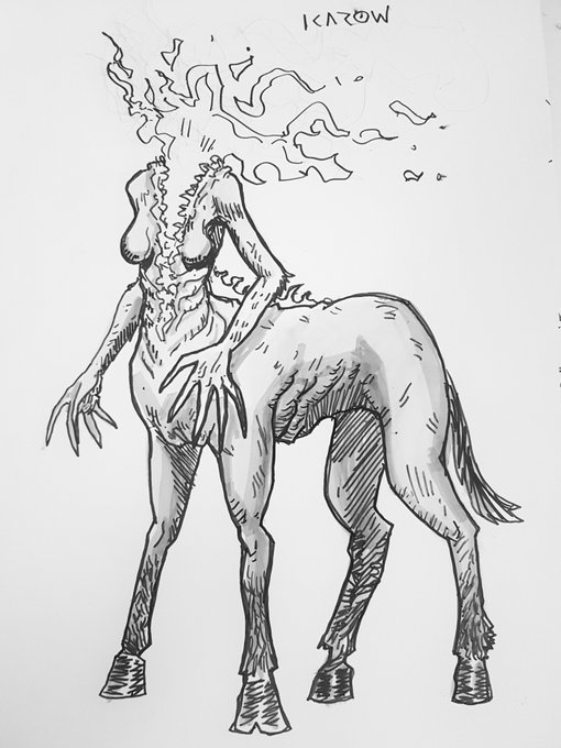 The Headless Mule is a character from brazilian #folklore. She was a woman cursed for a relationship with a priest within a church. She was turned into a fire-spewing headless mule. #FolkloreThursday #inktoberday3 #Inktober2019 #folktoberbr #horror #October3rd #Inktober