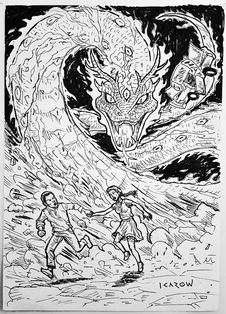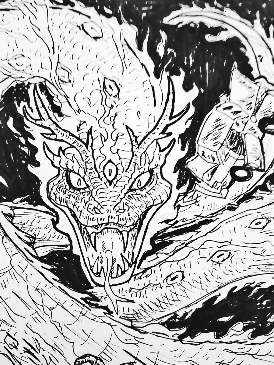 Boitatá is a gigantic fire serpent from Brazilian #folklore. Killer of anything that violates the forests, it diet consists of eyes from dead that brights through boitata body. #horror #inktoberday12 #folktoberbr #Inktober #Inktober2019 #folklorethursday #illustration #art