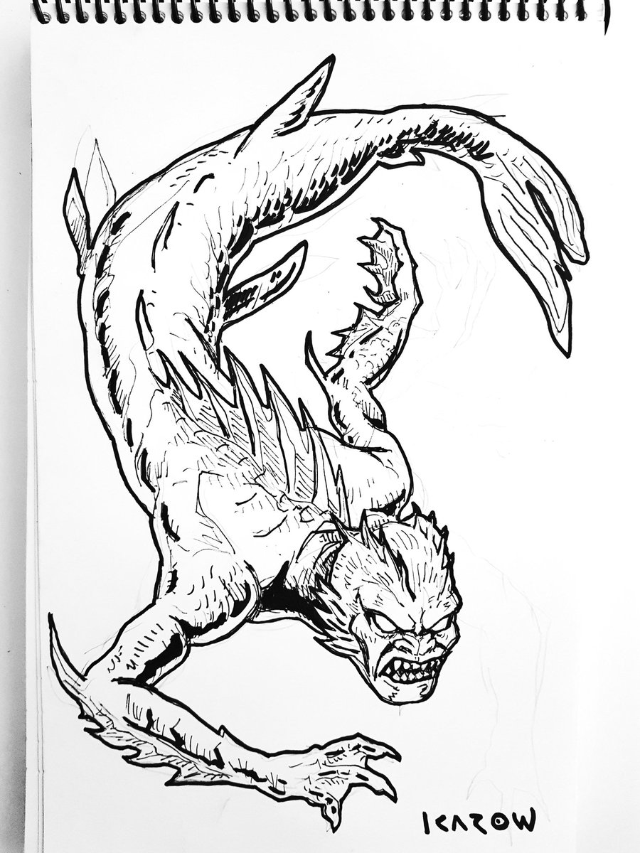 caboclo dagua is a humanoid amphibious creature that prey humans in many rivers across Brazil. #Inktober2019 #folklore #folklorethursday #inktoberday6 #Inktober2019 #illustration #monster #Inktoberday #inktoberbrasil #horror #folktoberbr #folktober #mythology