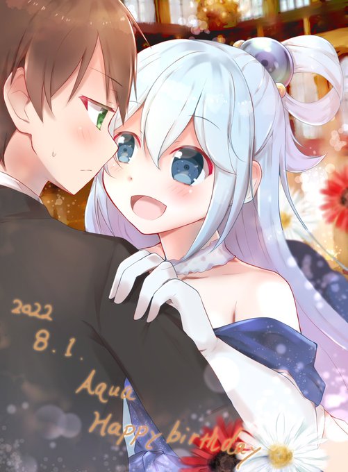 カズマさん誕生日おめでとう🎊✨✨ アクア様達と仲良くね! ⚠️魔王討伐後設定。web版準拠なのでカズ←アク要素あります #佐藤和真生誕祭2023
