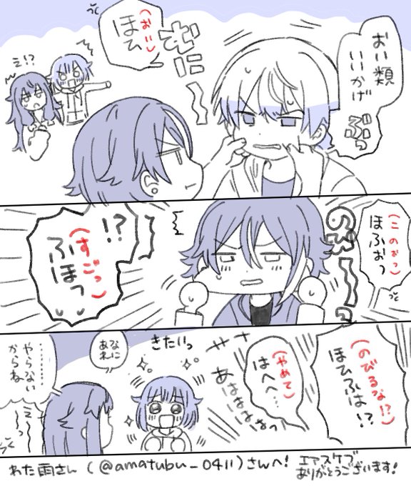 ほっぺ引っ張り合ってわちゃわちゃルツです!少しお題と逸れてしまったかも… わた雨さんエアスケブありがとうございました!( @amatubu_0411 ) #光つかエアスケブ投稿
