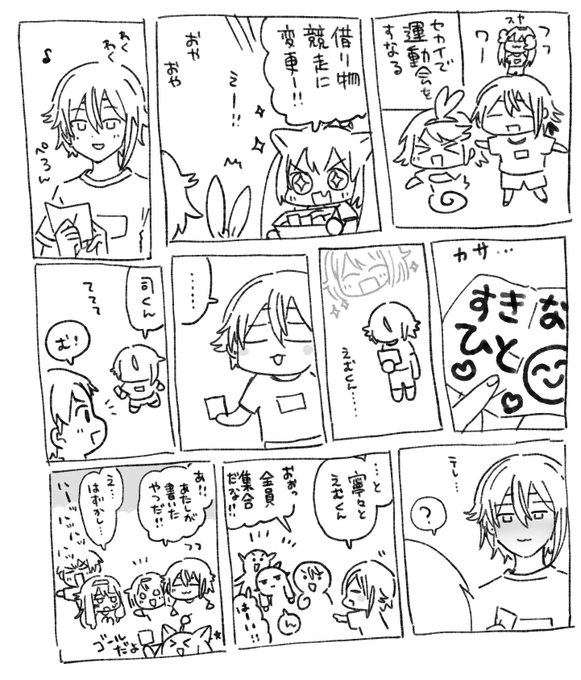 両片想い🎈→←🌟らくがき 10月に運動会するところもあるから🎪もセカイで運動会してほしい〜と思い…