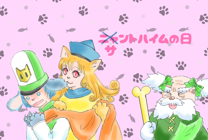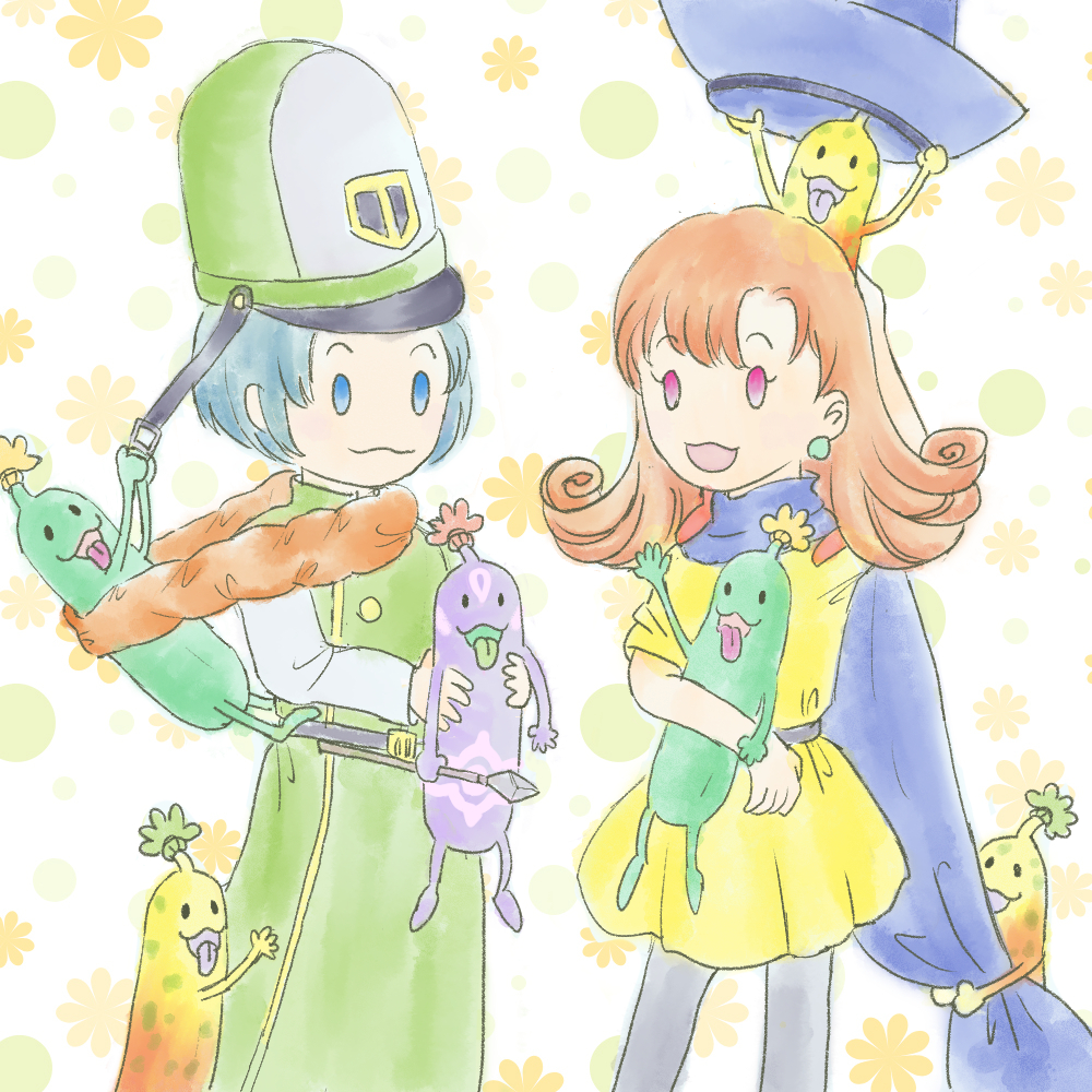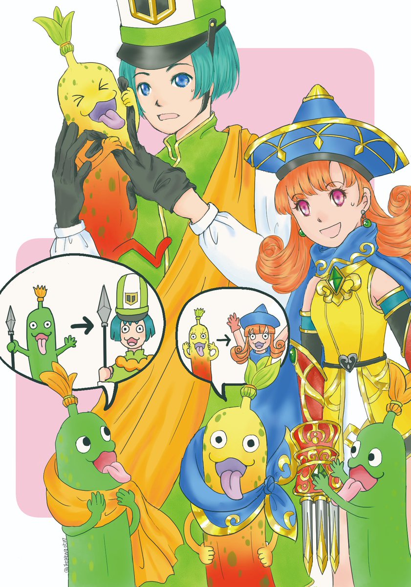 遅刻したけど #今月描いた絵を晒そう おてんば姫の「行進」と、DQHでクリフトがトランペット🎺吹くとこから、🎺クリフトとバンドメジャー姫様でマーチングバンド風目指したけど楽器描くのに挫折したサクカと、長い猫が描きたかったサクカボツ絵