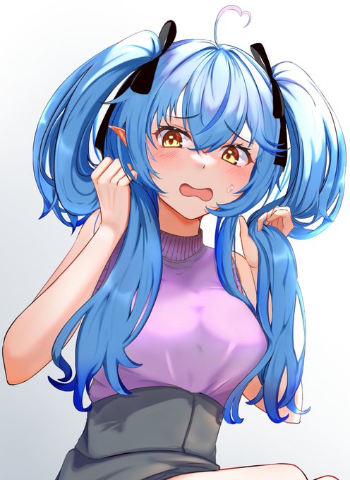 ツインテ恥ずかし顔ラミィさん! 太ももまで入れると検索できなそうなので全身はpixivにて〜 #LamyArt