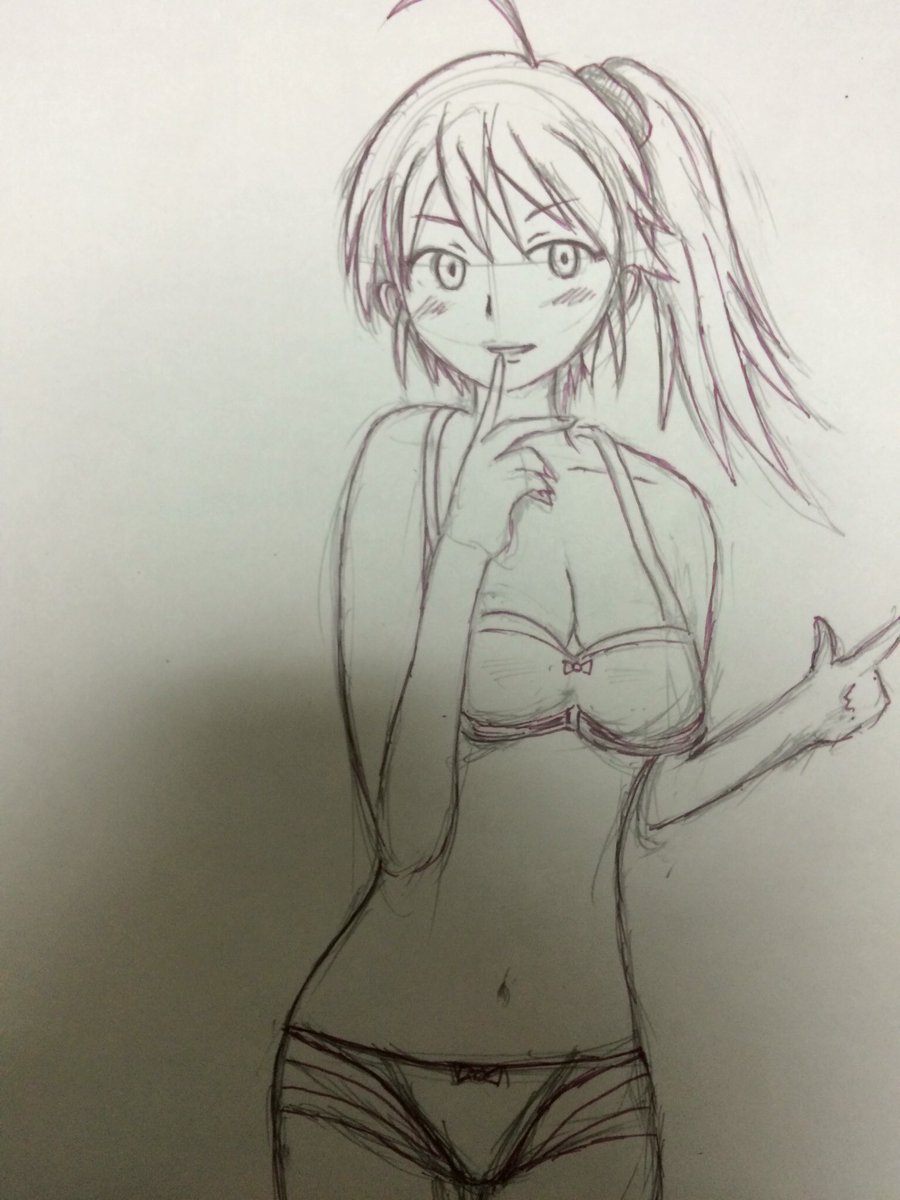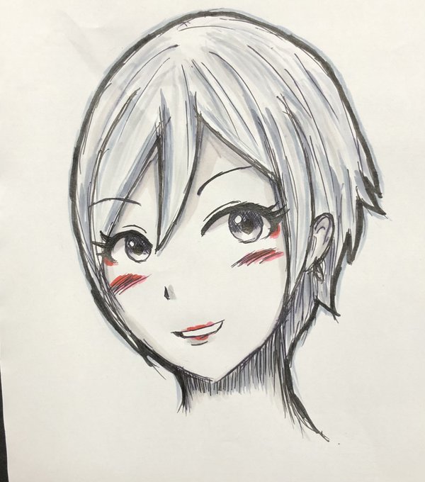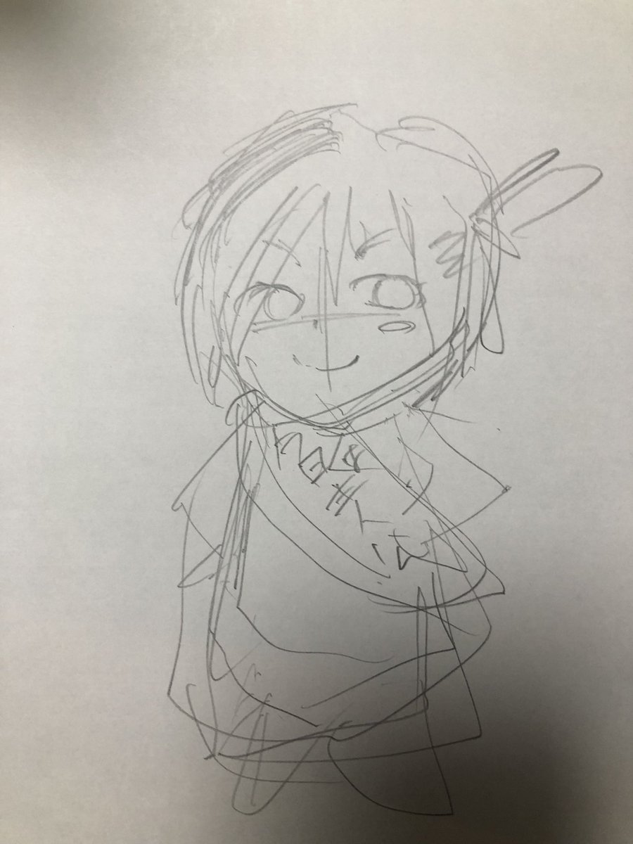 #このタグを見た人はラフ画とその完成絵を見せる ラフ画(コピー用紙)は、一枚に対して、何か一つ描いて、また一枚描いて…を繰り返してます。今回のイラストは、コレ(ラフ画)だ!って思って、清書して、塗ったのが、完成イラストになります!🥰