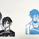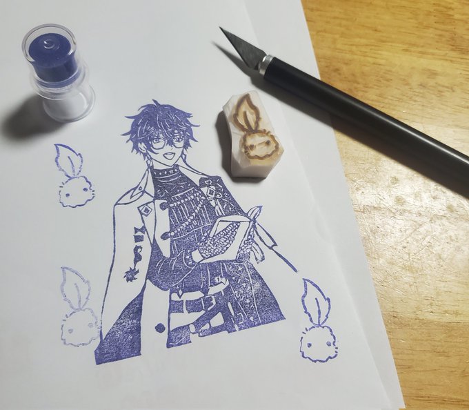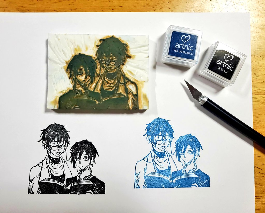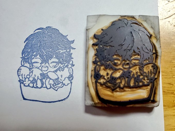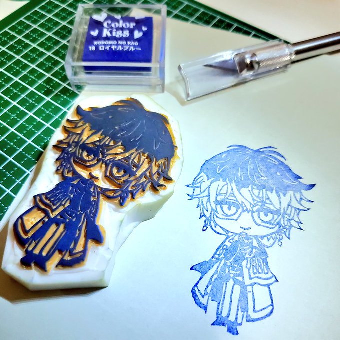アイク先生とユーゴくんの消しゴムはんこ出来た~!💙💙 ノートの隅や何かの文章の下に押して吹き出しを書くことで何でも読んでくれるアイク先生になります #Ikenography #AsumArt #消しゴムはんこ