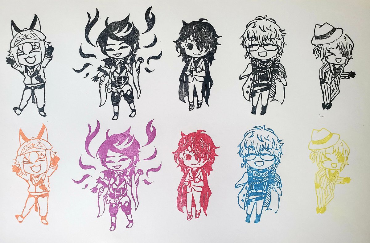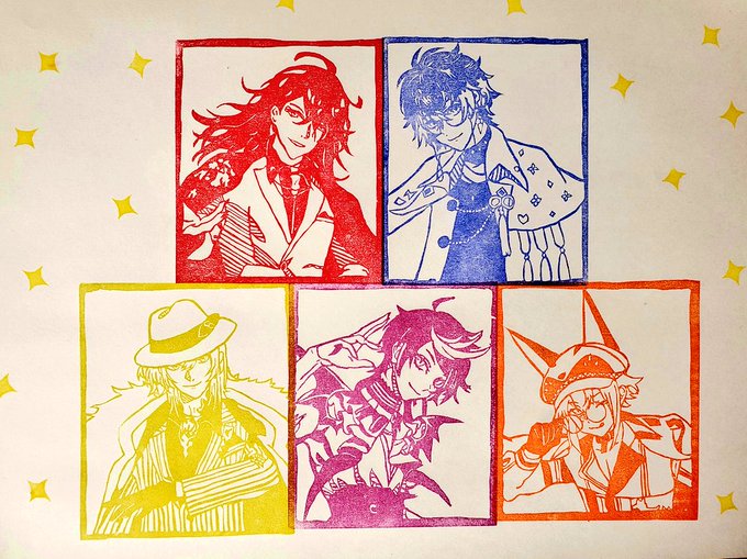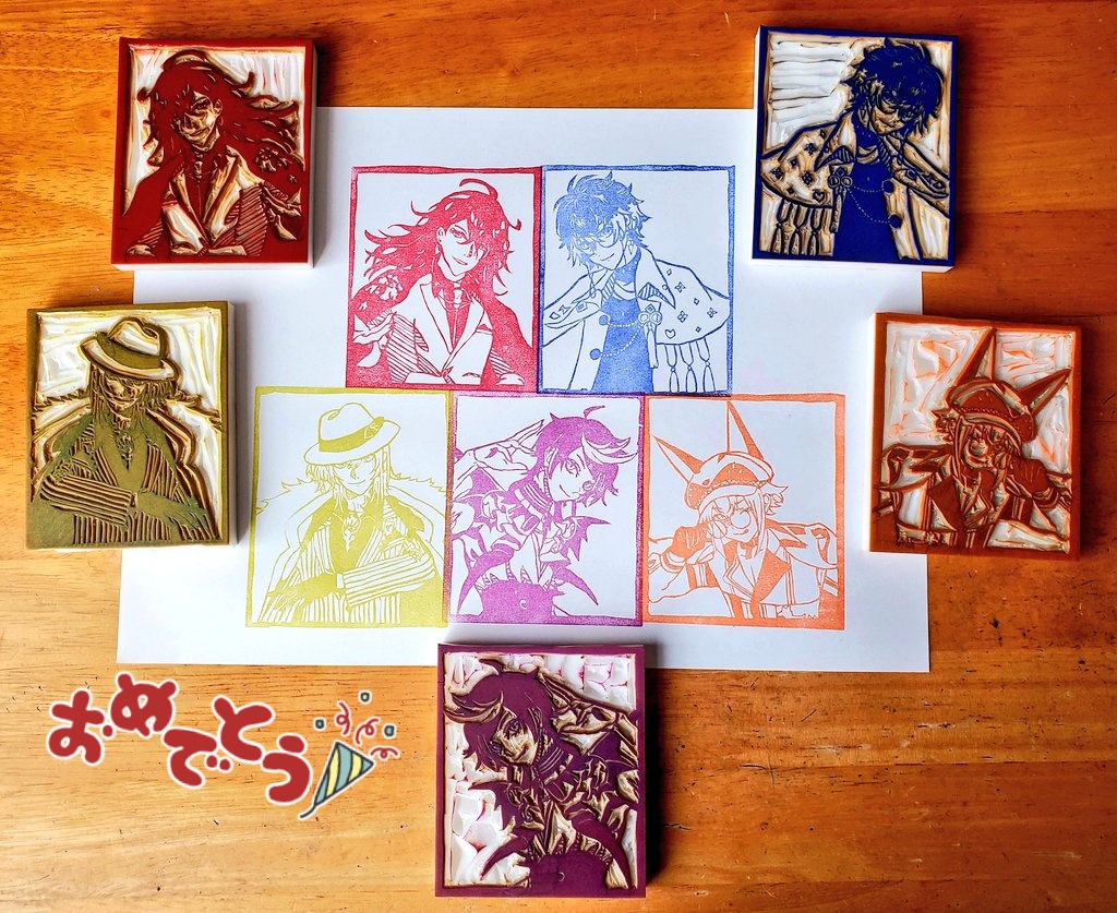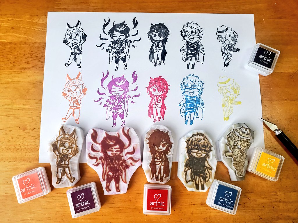 Luxiemの消しゴムはんこできたー!❤️💙💜🧡💛 This is my eraser stamp work! #MystArt #drawluca #yaminoart #Ikenography #akurylic #Luxiem #消しゴムはんこ